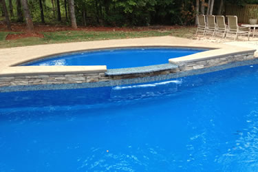 I’m not a fan of combination pool-spa models if the customer intends to use the spa year-round. The problem is the heating. Combination models share the same uninsulated plumbing and filter. The associated heat loss makes the spa section impractical to keep at the desired temperature when it’s cold outside. Powerful heaters can bring the spa, plumbing, and filter up to temperature for the 20 minutes or so of use, but then the energy would be lost as it’s left to cool down. Stand-alone spas like the Calspa line we represent are self-contained, well insulated and can be kept at the desired temperature. They can be set beside the pool and if desired, even made to look like they’re overflowing into the pool but keeping the waters separate. From experience, spas placed closer to the back door get used a lot more often in the winter.