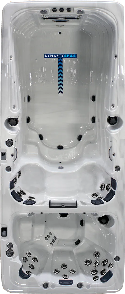 DUAL ZONE SWIM-SPAS VS SEPARATE SPA AND SWIM-SPA; the ability to hope over the wall between the exercising swim-spa and a hot relaxing spa is very nice and convenient. Alternatively, a separate, stand alone spa can be larger, more powerful and located closer to the back door.